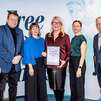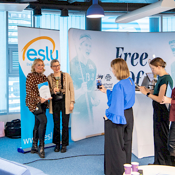 Palkinnon vastaanotti ESLUn toiminnanjohtaja Päivi Ahlroos-Tanttu. Mukana tilaisuudessa olivat myös Henni Aro ja Minttu Koivumäki.