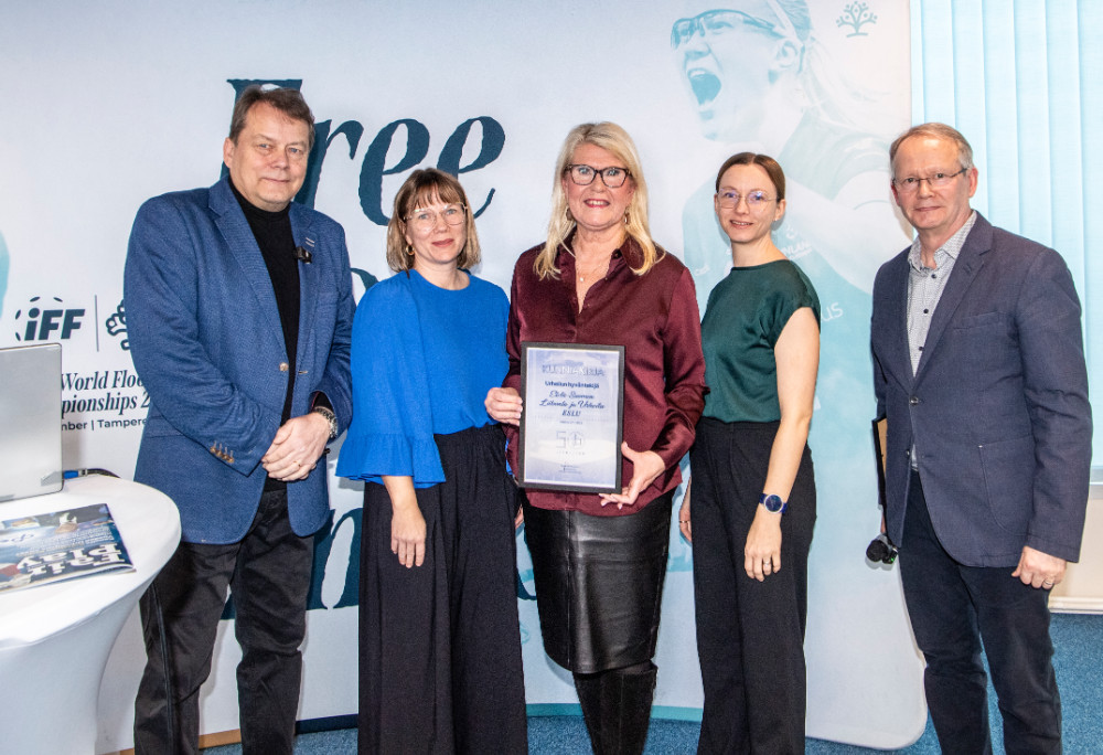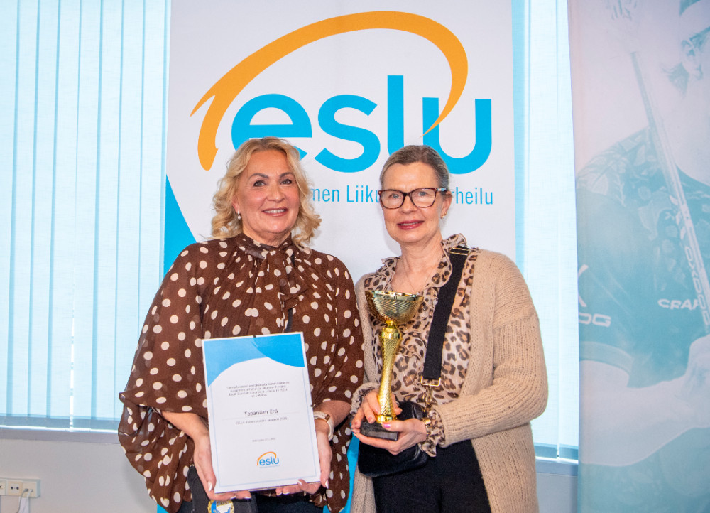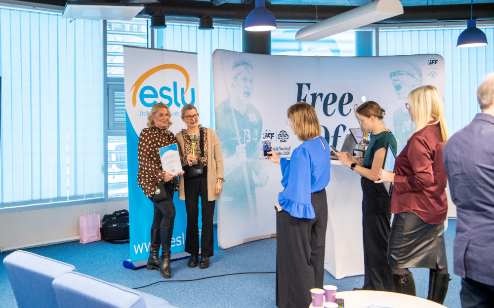 Palkinnon vastaanotti ESLUn toiminnanjohtaja Päivi Ahlroos-Tanttu. Mukana tilaisuudessa olivat myös Henni Aro ja Minttu Koivumäki.